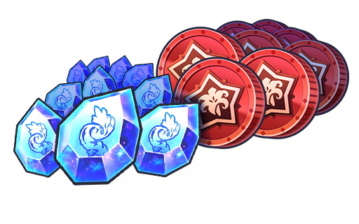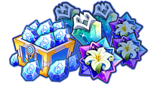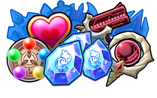 錬成レポート500 + 高速錬成チケット50 + 剣のマテリアル50 + 爆雷のマテリアル50 + 弓のマテリアル50 + ハートのマテリアル50 + 魔導のマテリアル50 + 銃のマテリアル50 + 槍のマテリアル50 + 斧のマテリアル50 + 杖のマテリアル50 + 有償姫石1,600 + 無償姫石380